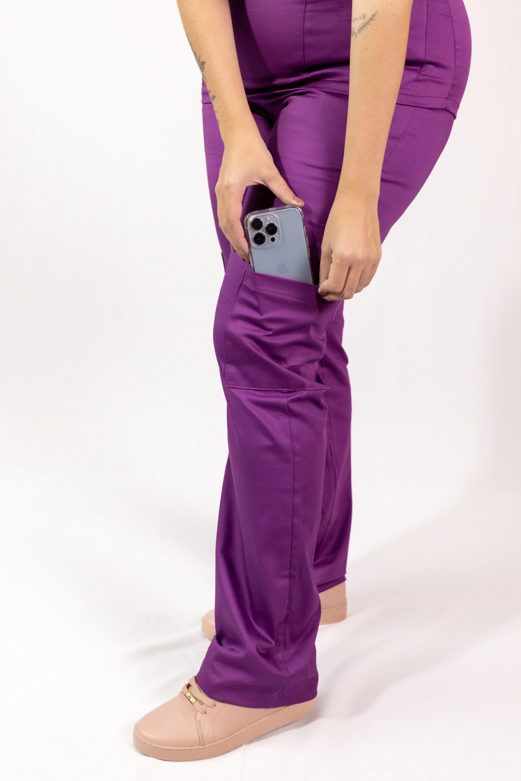 Descubra a Calça Lisa do Scrub em tom roxo, a peça essencial para profissionais da saúde que buscam aliar conforto, estilo e praticidade no dia a dia. Confeccionada em tecido de algodão com elastano importado, esta calça oferece uma sensação única de conforto, permitindo liberdade de movimentos durante longas jornadas.